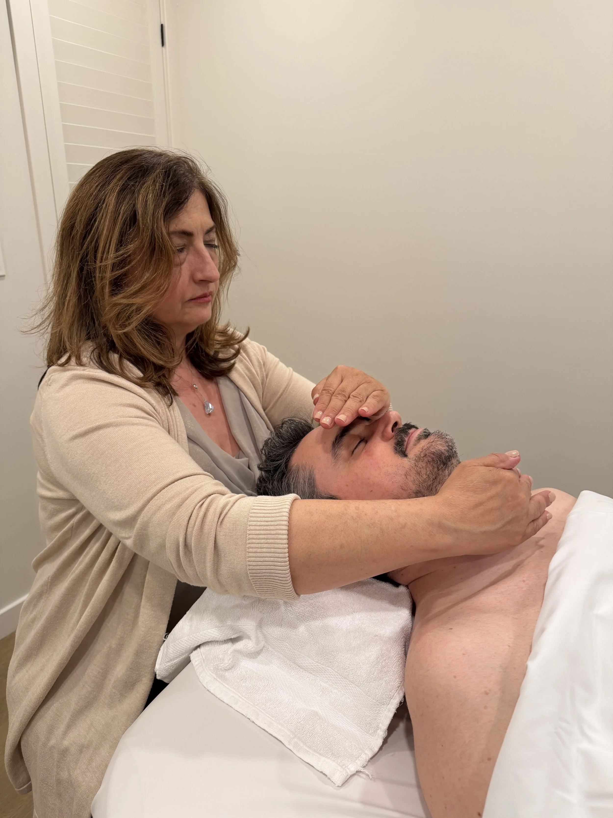 What truly makes this unique is that we don’t focus only on your face. We work through the shoulders, neck, scalp, jaw, and even the feet, releasing tension at its source especially in key areas like TMJ, where so much stress is held.